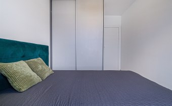 • pokój 2 (sypialnia) w duże podwójne łóżko z materacem, bardzo pojemną szafę z miejscem do przechowywania (garderoba),