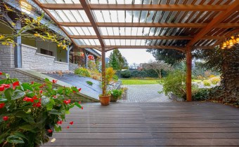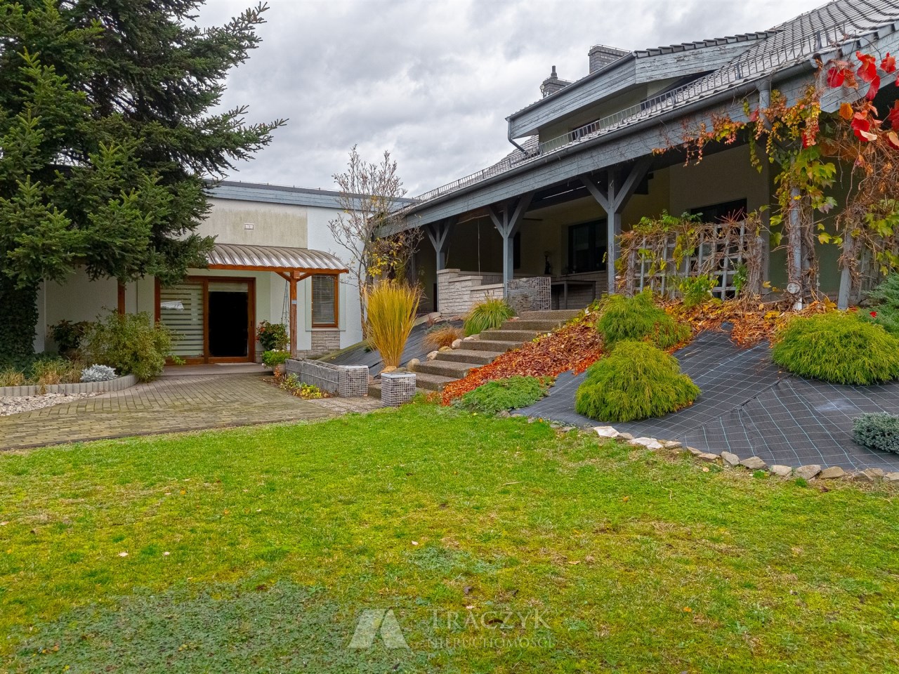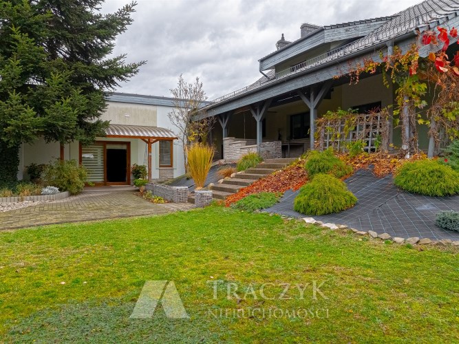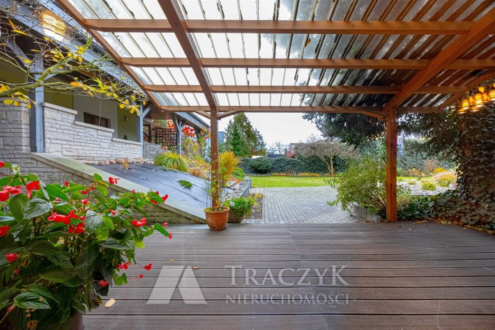Na terenie posesji znajduje się ogród z licznymi nasadzeniami krzewów i drzew ozdobnych, wszystko przemyślane z uwagą na najmniejsze detale.