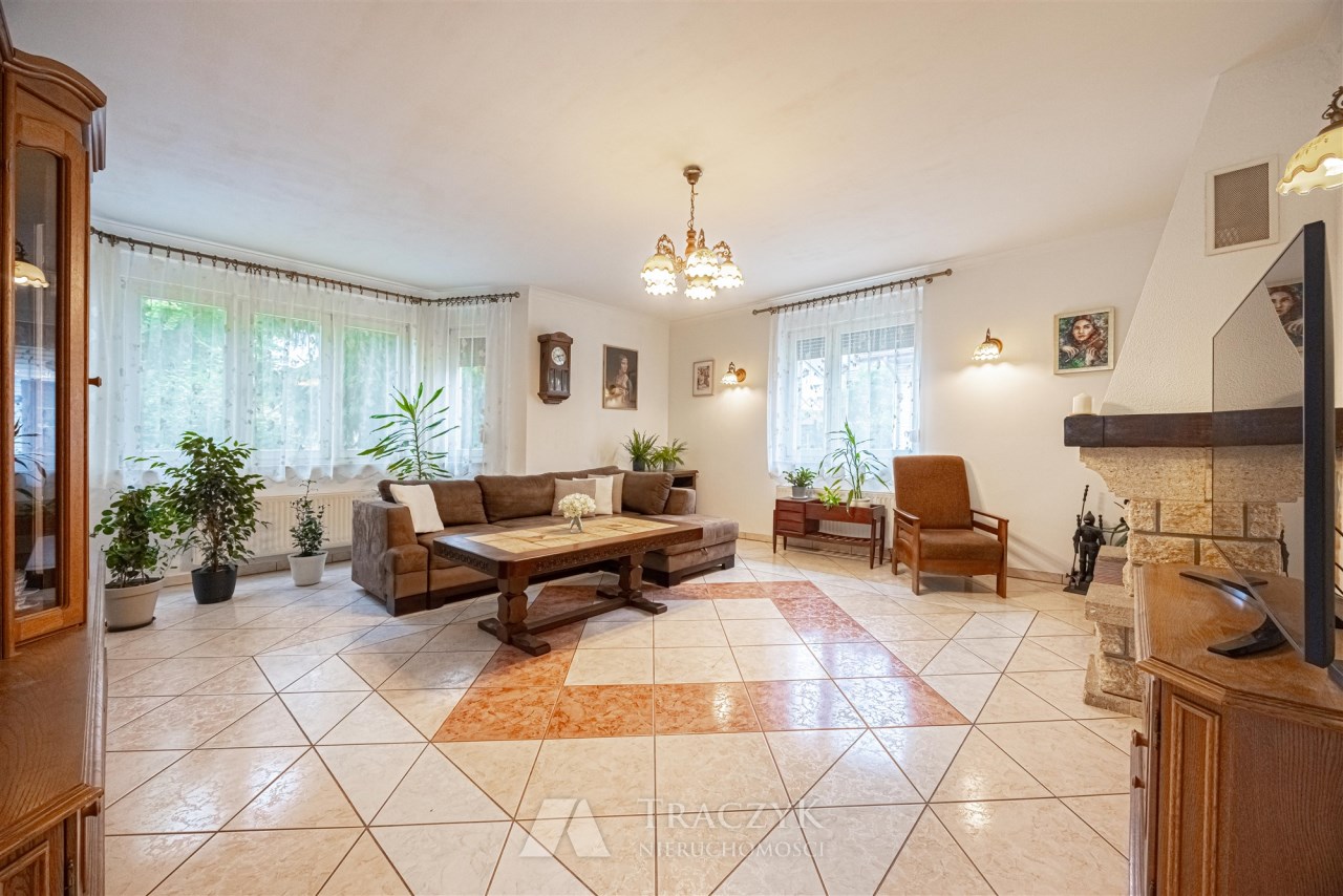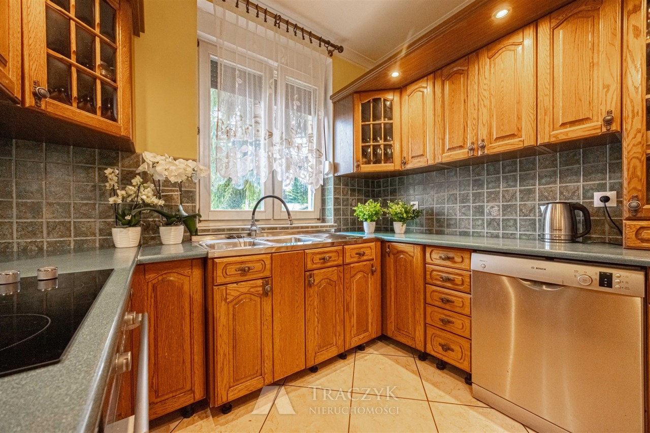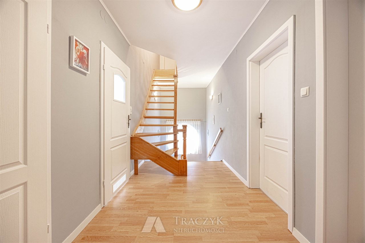 Wybudowany w 2007 roku dom o powierzchni użytkowej 156,9 m2 ma 3 kondygnacje, na których znajduje się salon z kominkiem, kuchnia ze spiżarnią, jadalnia z wyjściem do oranżerii, pralnia z prysznicem, WC, 3 przestronne sypialnie, duży pokój kąpielowy z ogromną wanną i prysznicem, garderoba oraz dodatkowo użytkowe poddasze doświetlone dwoma oknami dachowymi.