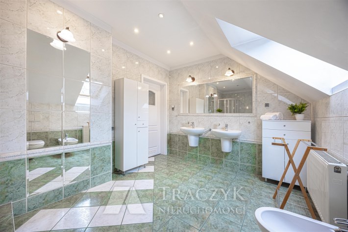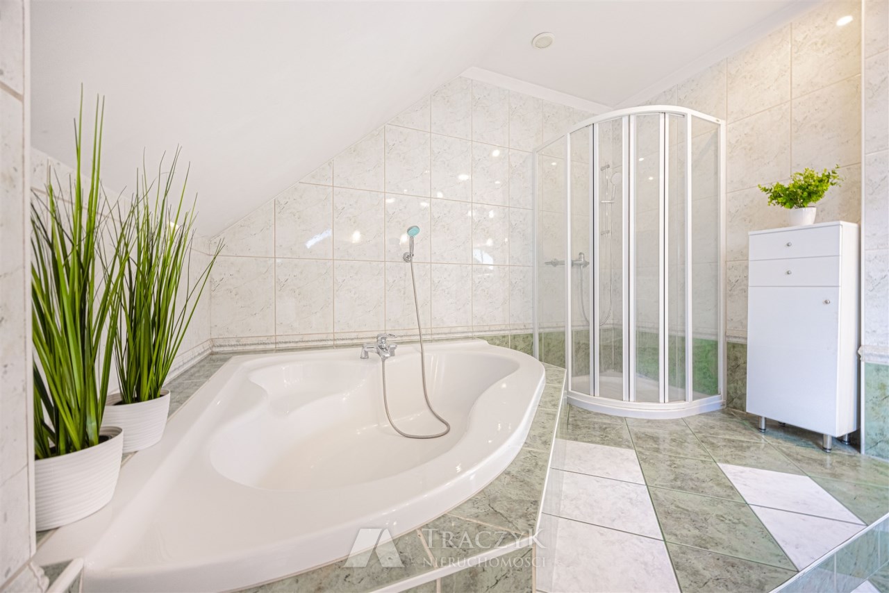 • duża łazienka (11 m2) z oknem, wyposażona w ogromną wannę oraz prysznic, tworząca prywatną strefę SPA,