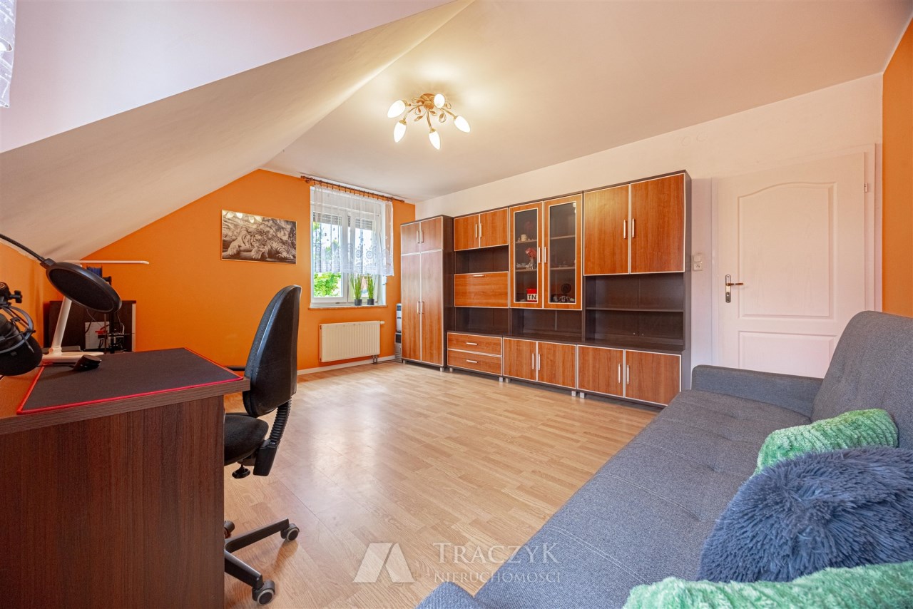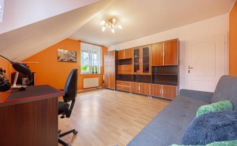 • w pełni zagospodarowane i doświetlone użytkowe poddasze z dwoma oknami dachowymi, które może pełnić funkcję dodatkowego pokoju lub pracowni.