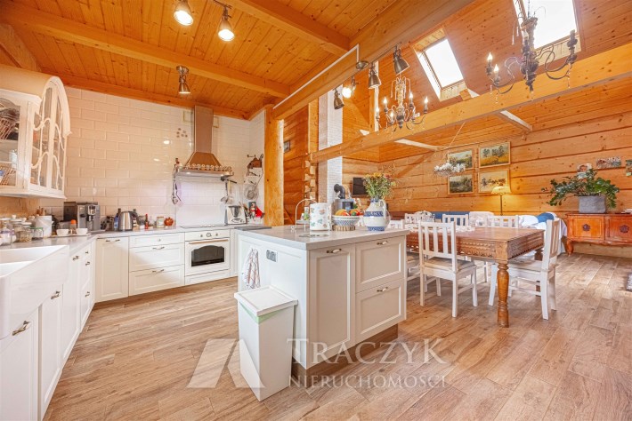 Ta niezwykła nieruchomość łączy w sobie solidność tradycyjnego rzemiosła z komfortem nowoczesnych rozwiązań. Wnętrza emanują ciepłem naturalnego drewna, tworząc atmosferę sprzyjającą relaksowi i poczuciu bliskości z naturą. To dom, który wyróżnia się nie tylko architekturą, ale również klimatem – idealny dla osób poszukujących unikalnej przestrzeni do życia.
