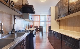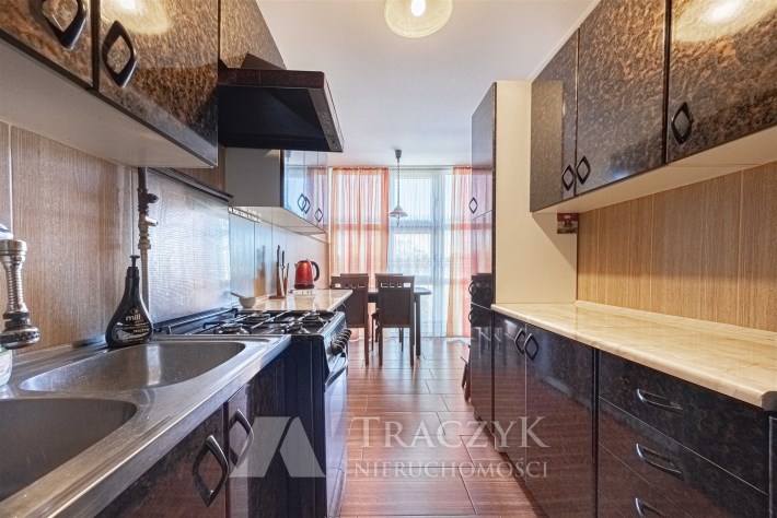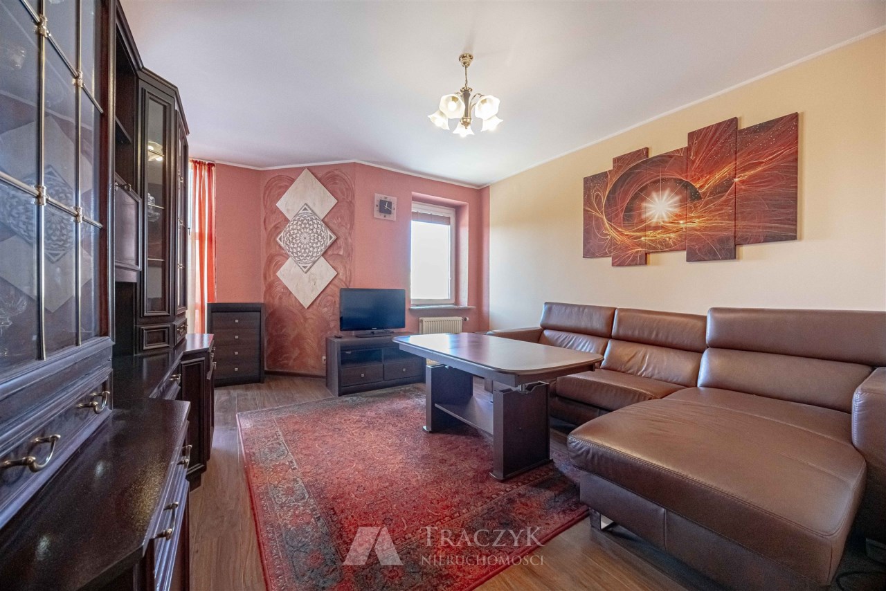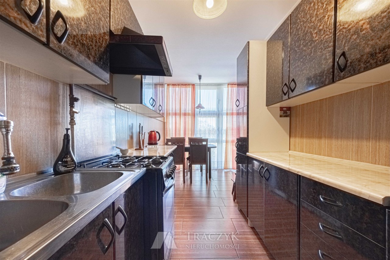 Lokal o powierzchni 76 m2 składa się z przedpokoju, 2 balkonów,  salonu z aneksem kuchennym, 3 sypialni, łazienki z wanną i prysznicem  oraz osobnego WC. W pomieszczeniach pełne umeblowanie i sprzęt AGD.