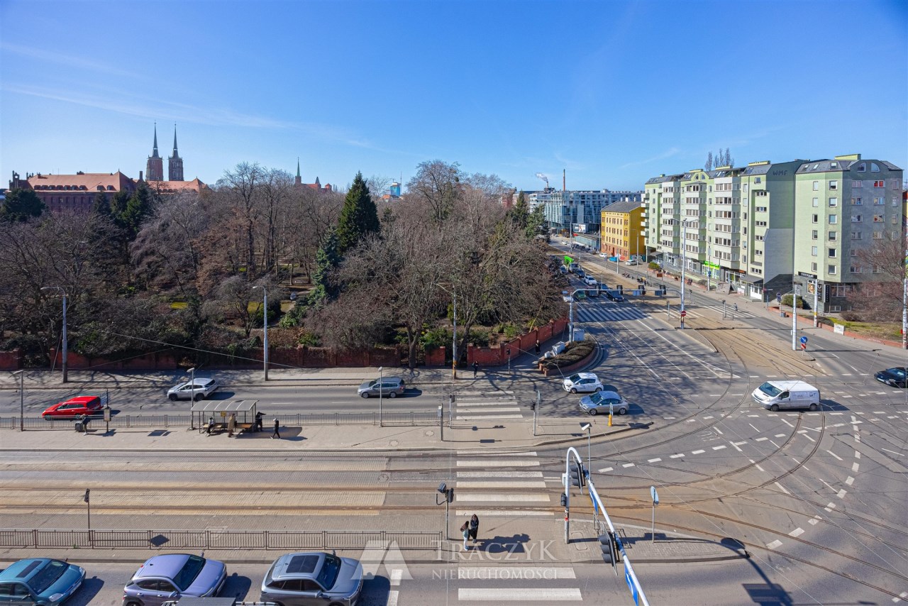 Mieszkanie ma ciekawy układ, jest przestronne i jasne, wykończone i umeblowane.  Znajduje się na 5 i 6 piętrze w budynku z lat 90-ych. Piękny widok z okien roztacza się na ogród botaniczny, katedrę i Ostrów Tumski.