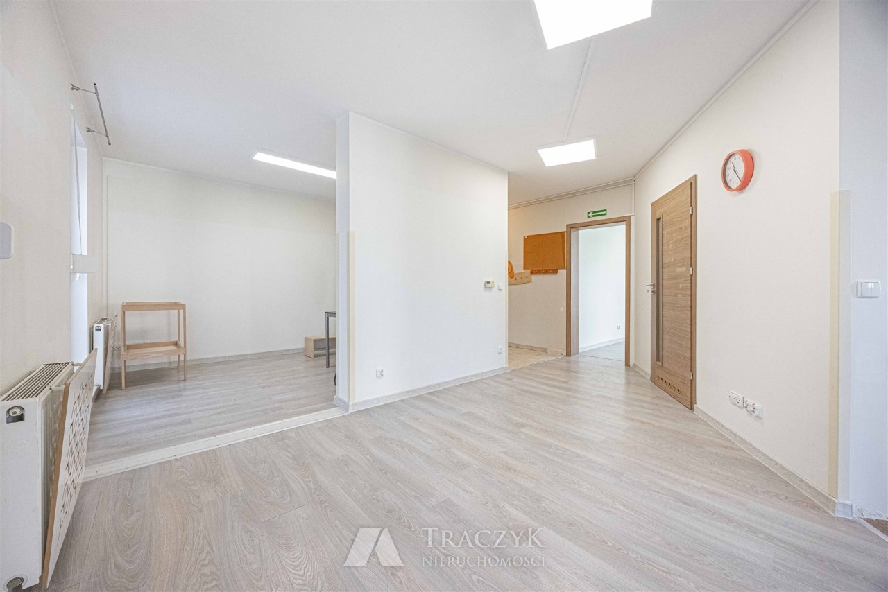 Mieszkanie przez kilkanaście lat było siedzibą żłobka, z tego względu wyposażenie lokalu nie jest pełne a jego układ został delikatnie zmieniony. Wycena nieruchomości brała pod uwagę konieczne do przeprowadzenia prace adaptacyjne związane z dostosowaniem lokalu do tego aby spełniał funkcję mieszkalną. Stan lokalu i cena pozwalają na adaptację i wykończenie mieszkania według własnego pomysłu i gustu.