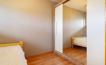 - sypialnia z łóżkiem dwuosobowym z wygodnym materacem. Dodatkowo w pokoju duża szafa wnękowa,