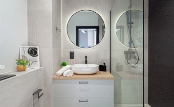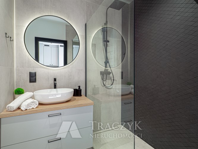 - nowocześnie wykończonej łazienki z prysznicem.