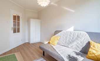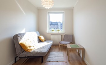 Mieszkanie znajduje się na 4 piętrze w budynku z windą. Jest w pełni umeblowane i wyposażone we wszystkie niezbędne sprzęty, gotowe do natychmiastowego zamieszkania. Dodatkowo, w mieszkaniu dostępne są udogodnienia takie jak odkurzacz, żelazko, deska do prasowania i suszarka do prania.