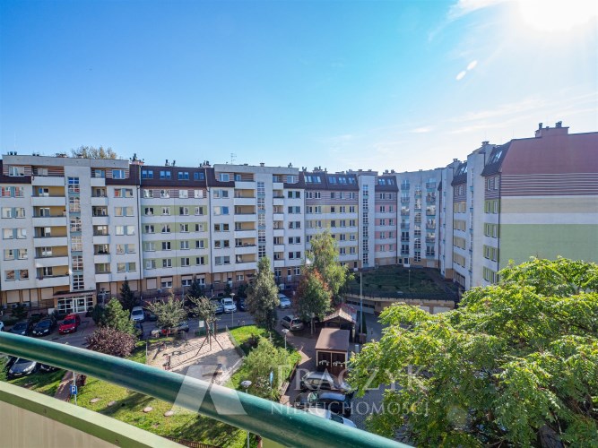 • Balkon: przestronny balkon, idealny do wypoczynku i relaksu, z widokiem na spokojną część osiedla,