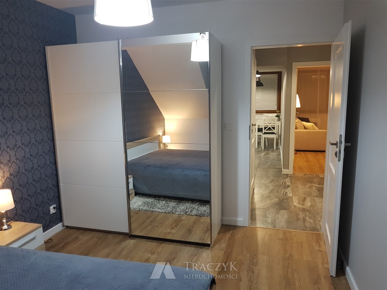 W pierwszym pokoju znajduje się rozkładana sofa oraz TV; w sypialni numer dwa szafa z lustrem, łóżko małżeńskie. Natomiast w  trzecim pokoju rozkładana sofa, komoda oraz szafa.