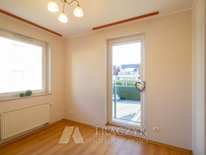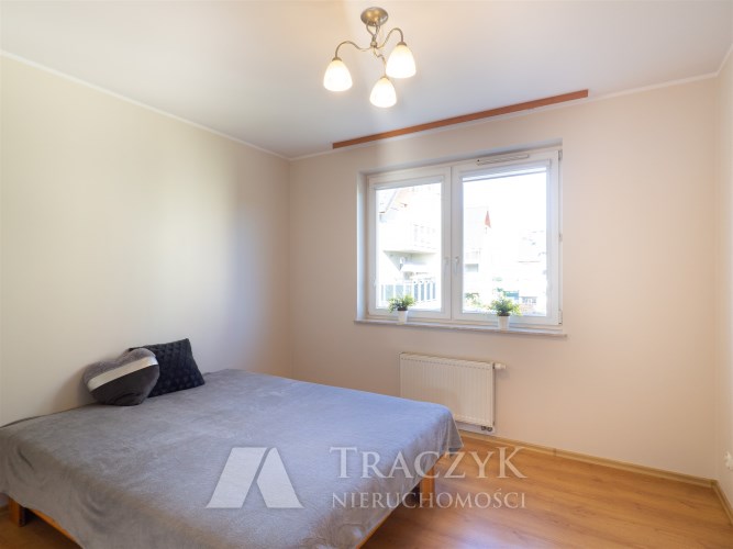 Sypialnia w swoim wnętrzu mieści duże, dwuosobowe łóżko z materacem natomiast drugi pokój można wykorzystać jako sypialnię lub gabinet do pracy w domu.
