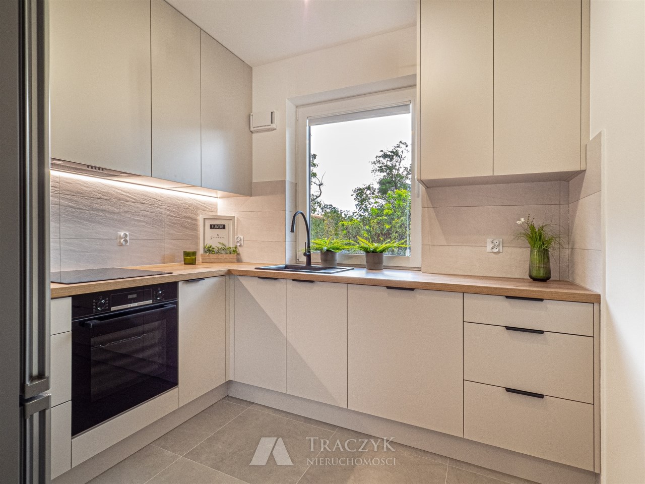Wnętrze zostało urządzone z dbałością o detale – wyposażone w meble na wymiar oraz wysokiej jakości sprzęt AGD, co gwarantuje komfort i funkcjonalność od pierwszego dnia.