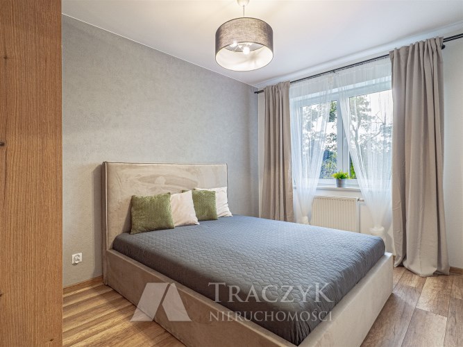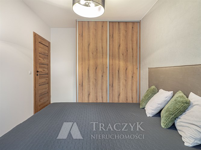 - sypialnia z wygodnym, podwójnym łóżkiem i dużą szafą w zabudowie,