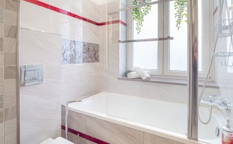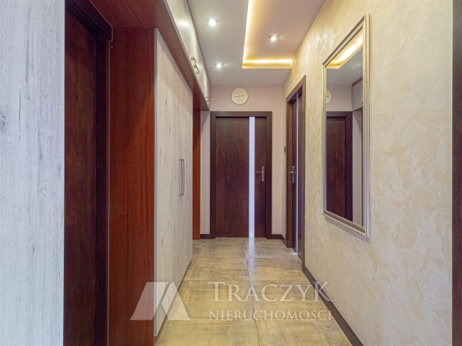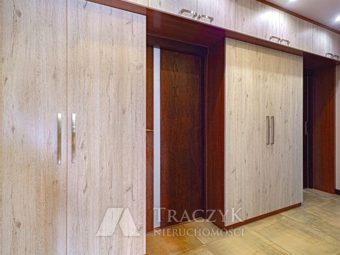 - Przedpokój: z dużą ilością zabudowanych szaf, zapewniających dodatkową przestrzeń do przechowywania.