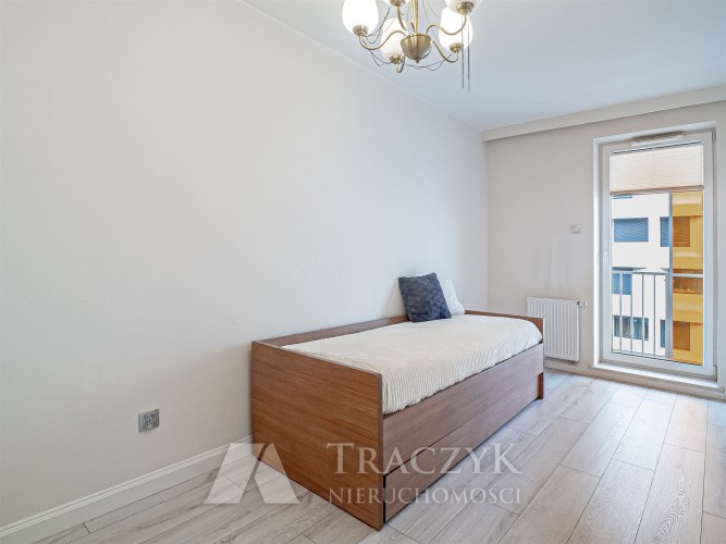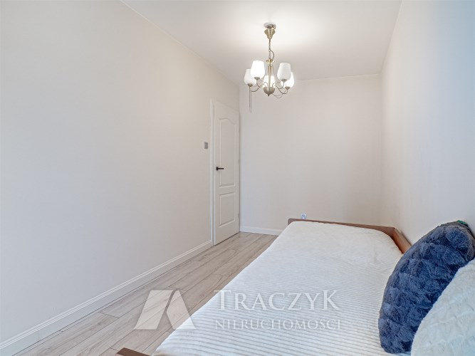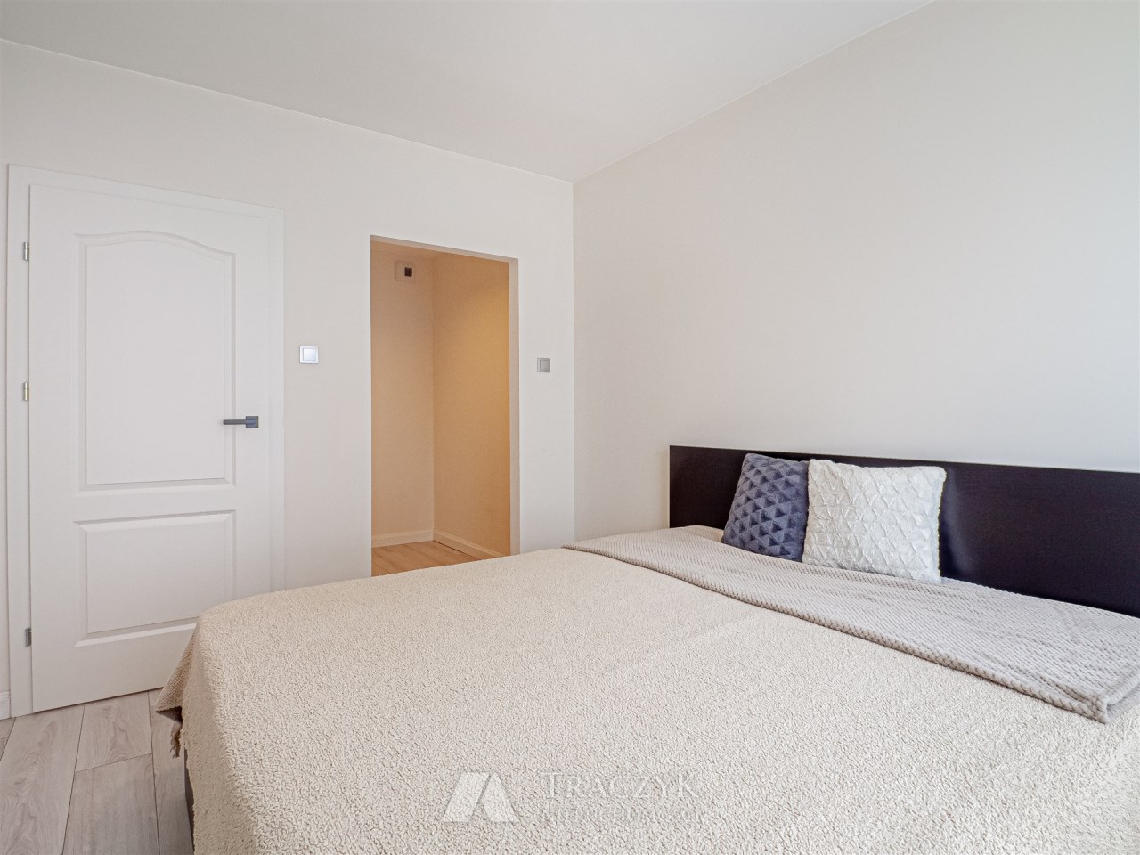 - pokój nr 3 (sypialnia) – duże, wygodne łóżko 180 × 200 cm z dodatkowym schowkiem, dodatkowo wydzielona przestrzeń mogąca pełnić funkcję garderoby,