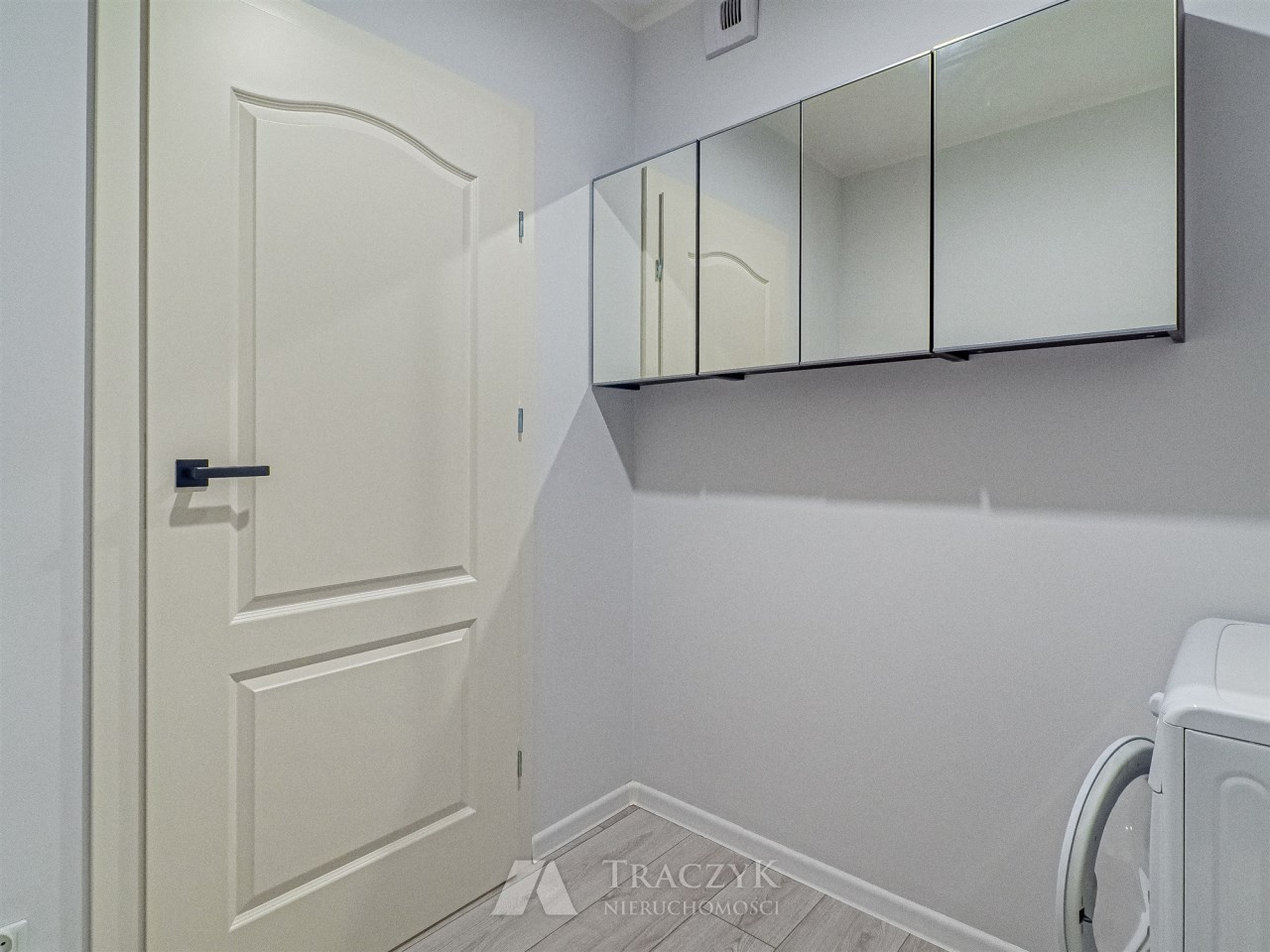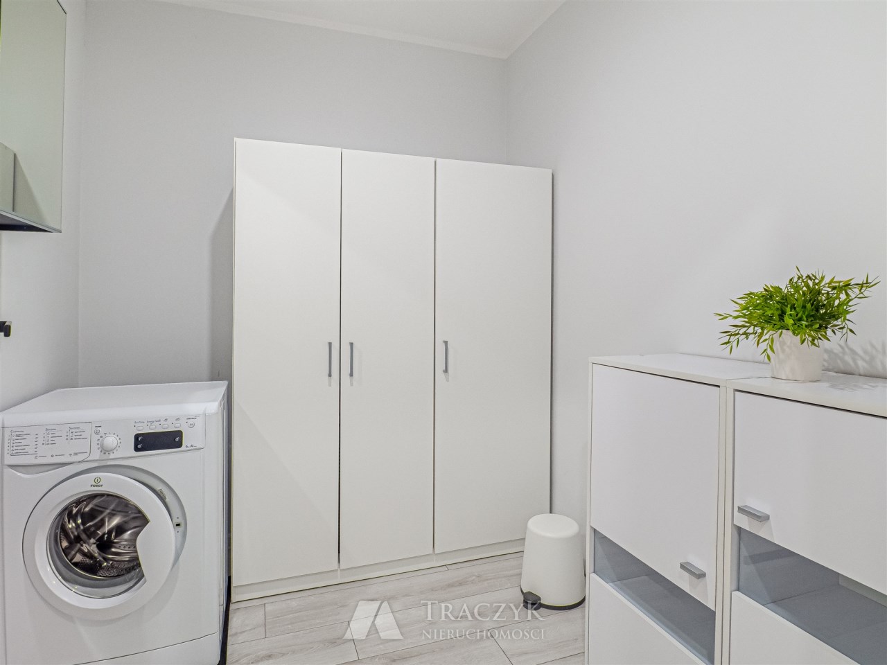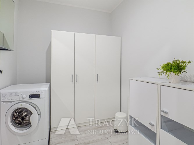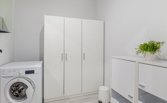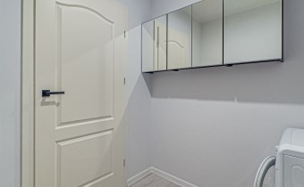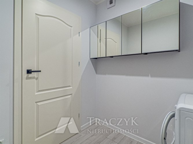 - pokój 2 – zaadaptowany na pralnię: pralka, szafa, komoda oraz lustra ścienne z szafkami,