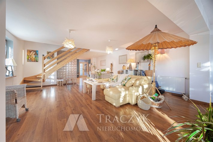 Dom idealny dla rodziny ceniącej sobie ciszę i spokój, a także komfort mieszkania w przestronnej, niecodziennej nieruchomości. Duży ogród z licznymi nasadzeniami i taras są dodatkowym atutem.