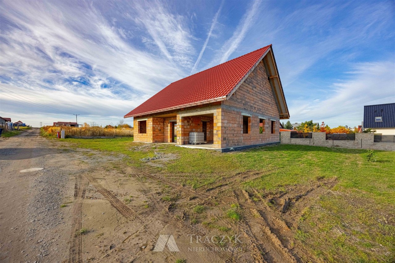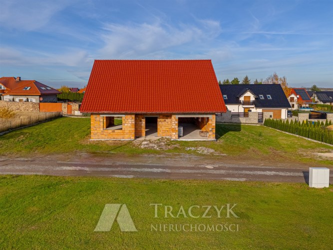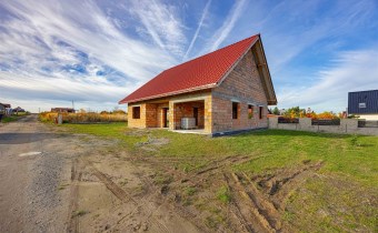 Powierzchnia zabudowy wynosi 201,07 m², a wymiary domu to 14,15 × 14,15 m. Budynek przykryty jest dachem dwuspadowym pokrytym dachówką ceramiczną, co nadaje mu klasyczny, elegancki wygląd i doskonale wpisuje się w charakter zabudowy jednorodzinnej w okolicy.