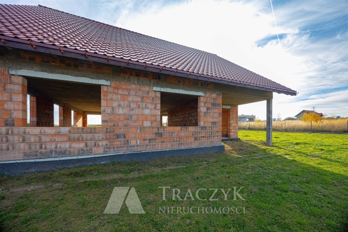 Powierzchnia użytkowa domu wynosi 115,19 m², na którą składają się: wiatrołap, hol, spiżarnia, przestronna kuchnia (16,48 m²), salon z jadalnią (26,59 m²), przedpokój, łazienka (6,86 m²), dodatkowe WC oraz trzy komfortowe pokoje o powierzchniach 19,03 m², 14,64 m² i 11,18 m².