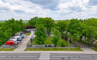Działka gruntu o kształcie trapezu o powierzchni 3600 m2, w pełni ogrodzona, z dwoma bramami wjazdowymi zabudowana dwoma wolnostojącymi budynkami. Pierwszy z nich o powierzchni 125,5 m2 pełni obecnie funkcję biurowo-usługową, drugi budynek o powierzchni 100 m2 mógłby być wykorzystywany w przyszłości na ten sam lub inny cel (możliwość rozbudowy (np. dodatkowe piętro), budynek wymaga remontu).