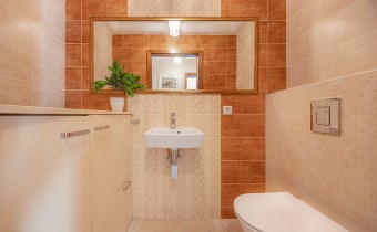 - Separate Toilet – Finished in warm beige and brown tones, enhancing a cozy and harmonious ambiance. Equipped with a sink, a large mirror, and custom-built cabinetry, providing extra storage space for cleaning supplies and bathroom accessories.