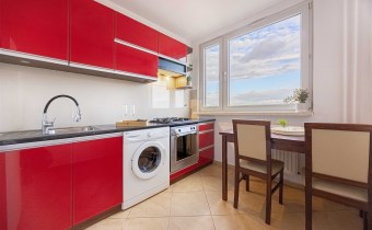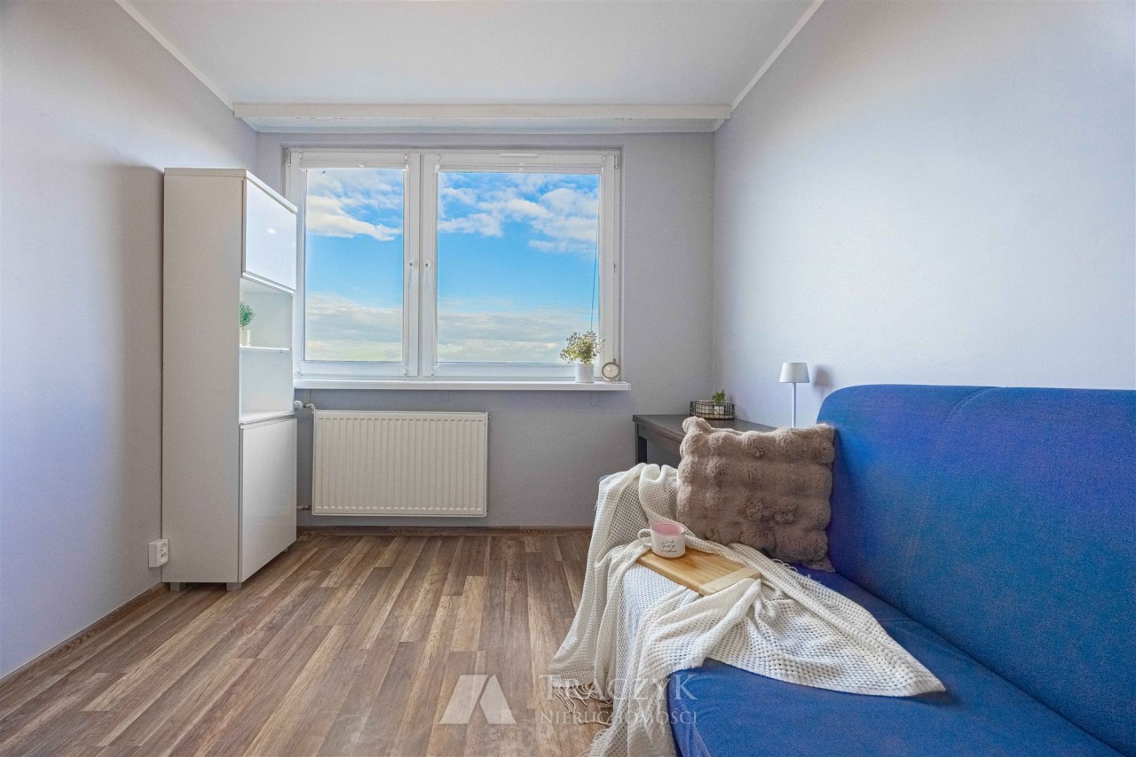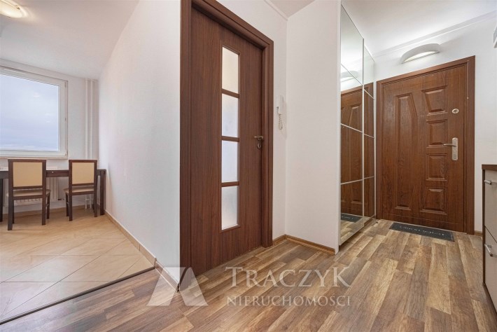 Mieszkanie znajduje się na dziewiątym piętrze budynku z nową, cichą i szybką windą, jest w pełni rozkładowe. Klatka schodowa zadbana. Budynek posiada miejsca parkingowe dla jego mieszkańców, a także jest sporo miejsc na osiedlu.