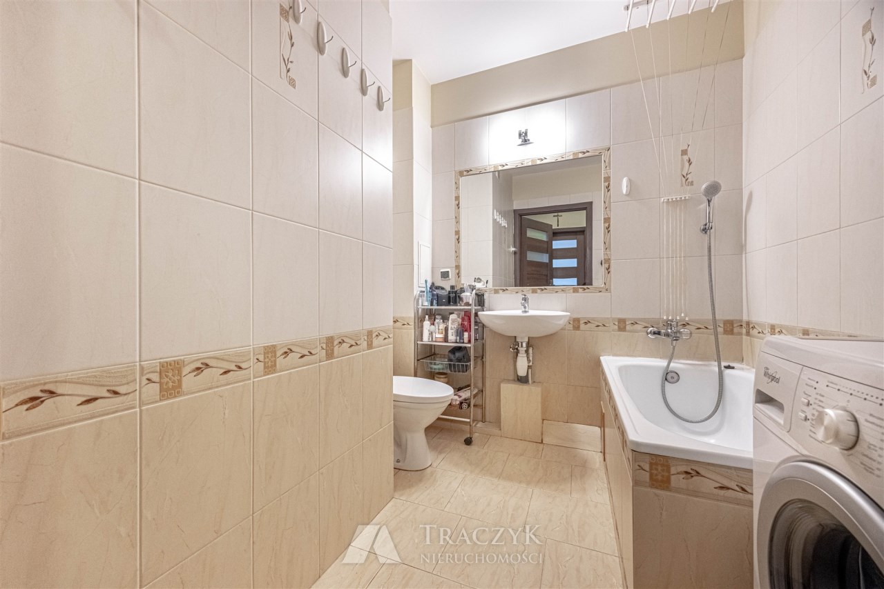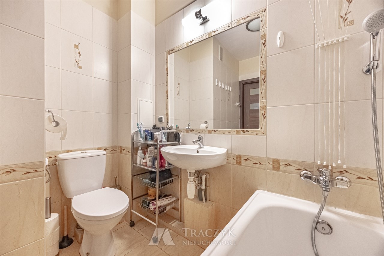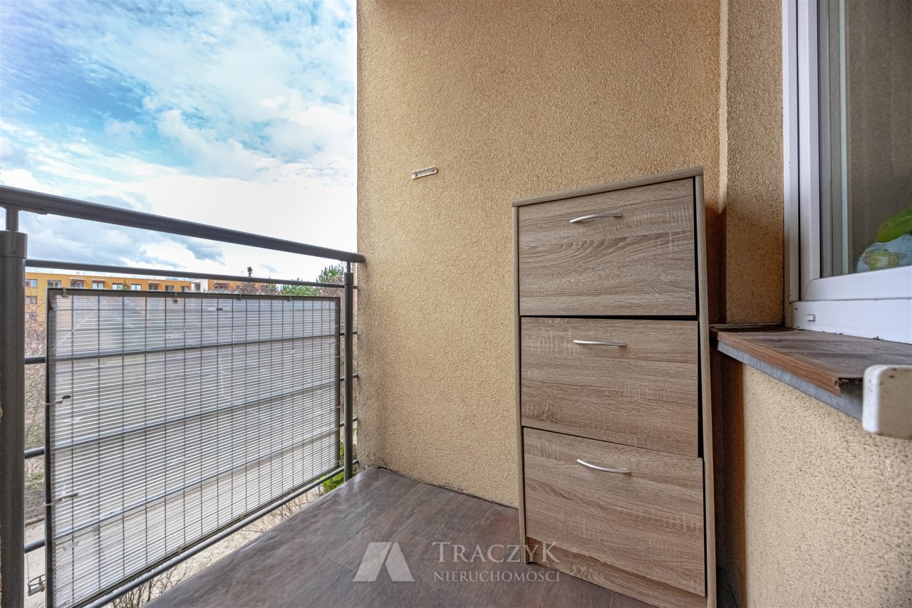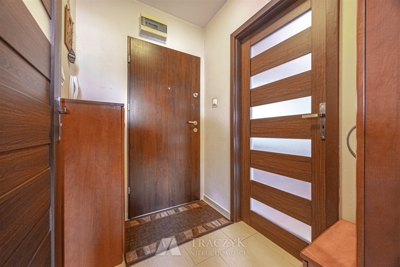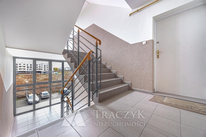 Kawalerka nie była wynajmowana, zamieszkana przez właściciela, który dbał o nieruchomość. Mieszkanie znajduje się na drugim piętrze budynku bez windy. Klatka schodowa zadbana. Osiedle jest zamknięte, jest sporo miejsc parkingowych, a sam budynek zadbany wraz z komfortowym wejściem. Wszystkie okna nieruchomości wychodzą na tył budynku, gdzie jest duża przestrzeń zieleni, z dala od hałasów.
