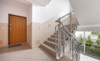 Klatka schodowa widna, czysta i zadbana. Wejście zabezpieczone domofonem.