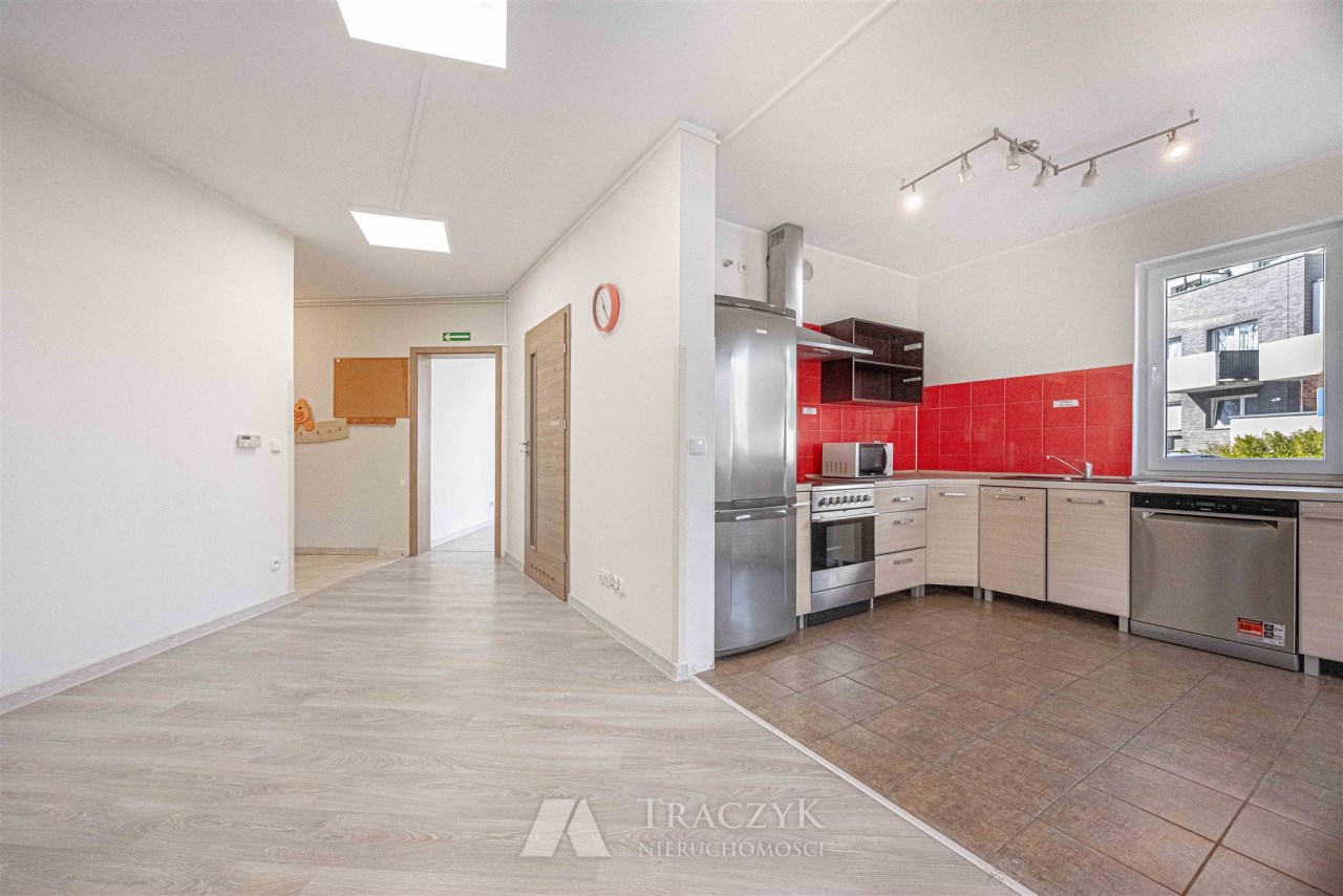 Mieszkanie przez kilkanaście lat było siedzibą żłobka, z tego względu wyposażenie lokalu nie jest pełne a jego układ został delikatnie zmieniony. Wycena nieruchomości brała pod uwagę konieczne do przeprowadzenia prace adaptacyjne związane z dostosowaniem lokalu do tego aby spełniał funkcję mieszkalną. Stan lokalu i cena pozwalają na adaptację i wykończenie mieszkania według własnego pomysłu i gustu.