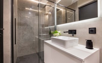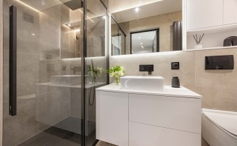 Nowoczesne wykończenie premium – m.in. hiszpańskie płytki, trzyszybowe okna, matowe fronty, betonowe parapety