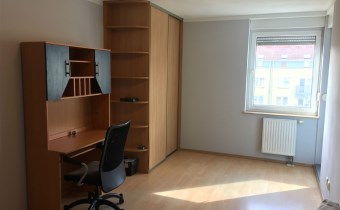 Pokój 1: sofa rozkładana, szafa, biurko z krzesłem.