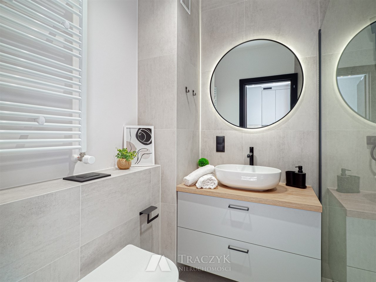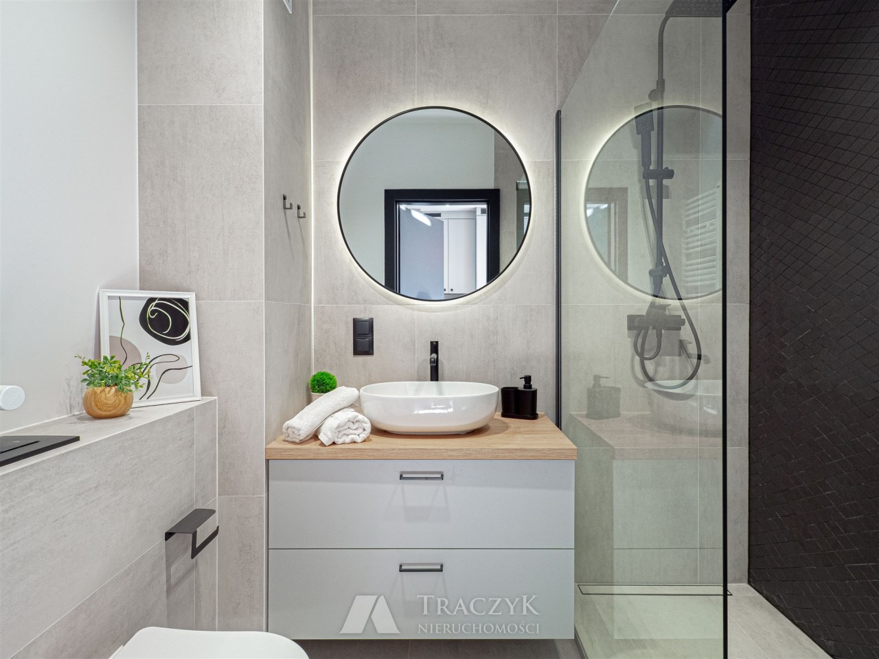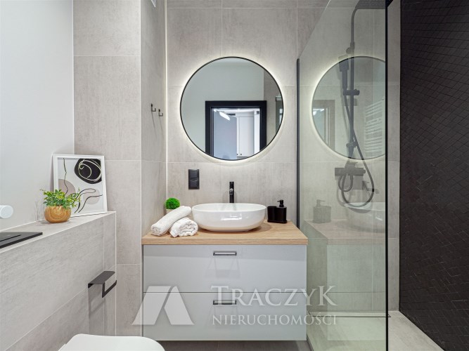 - nowocześnie wykończonej łazienki z prysznicem.