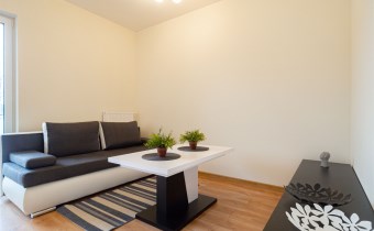 - salon, którymieści rozkładaną sofę 2-3 osobową, stolik kawowy oraz szafkę pod telewizor,