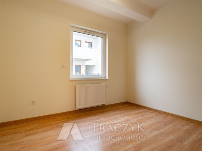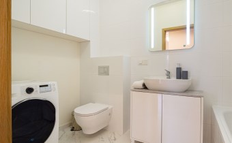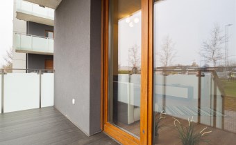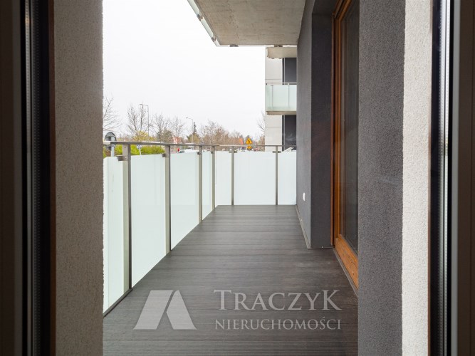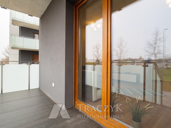 Dodatkowo lokal wyposażony jest w duży balkon z wyjściem z salonu, z którego można zejść na niewielki, przydomowy trawnik. Do mieszkania przynależy miejsce postojowe w podziemnej hali garażowej oraz komórka lokatorska dostępna dla najemców, która pozwoli na przechowywanie np. rowerów.