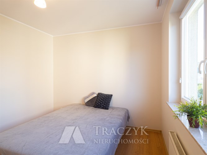 Sypialnia w swoim wnętrzu mieści duże, dwuosobowe łóżko z materacem natomiast drugi pokój można wykorzystać jako sypialnię lub gabinet do pracy w domu.