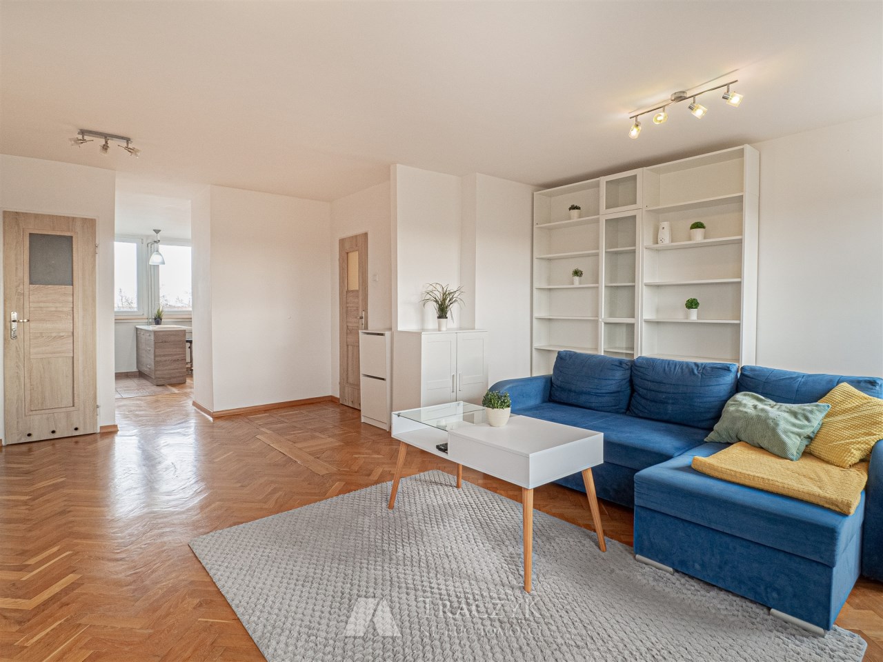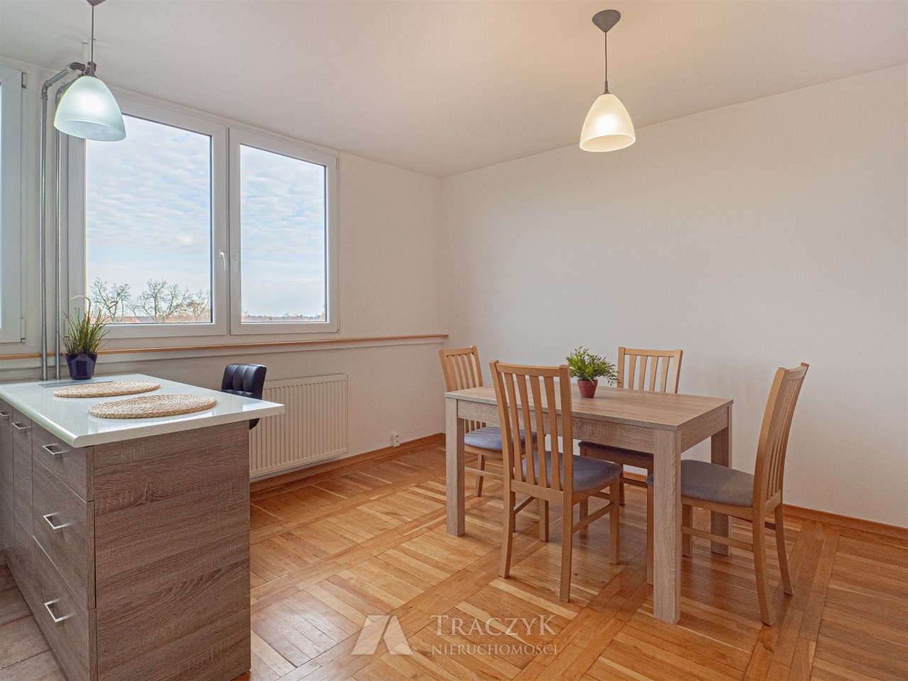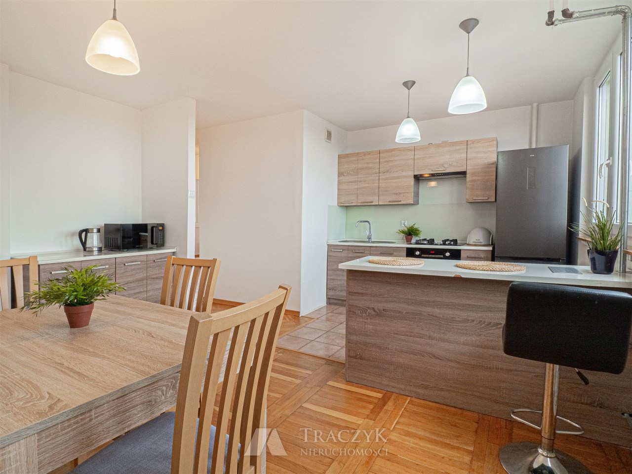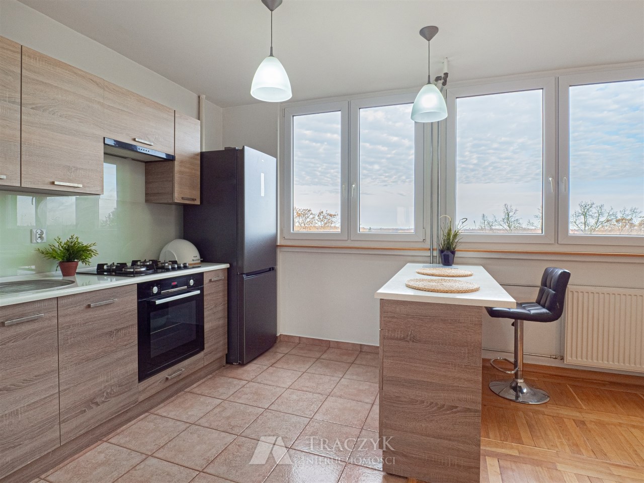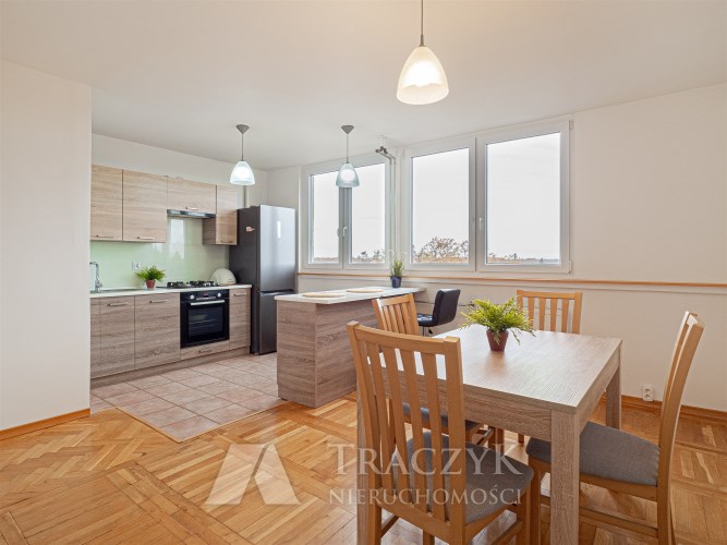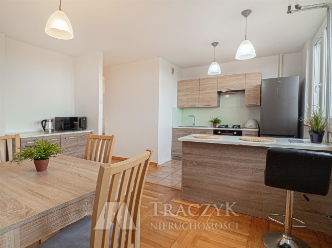 - Duża powierzchnia i funkcjonalny rozkład – osobna kuchnia, duży salon, balkon.