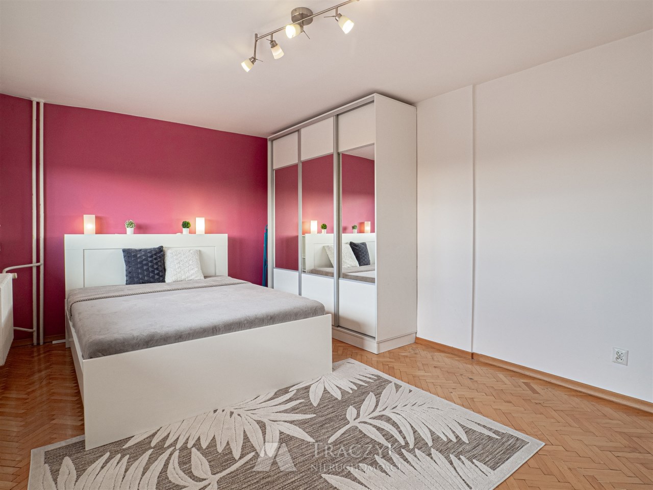 - sypialni — z podwójnym łóżkiem oraz szafą z lustrem, a z sypialni jest wyjście na duży balkon, który zapewnia przyjemną przestrzeń do relaksu;