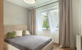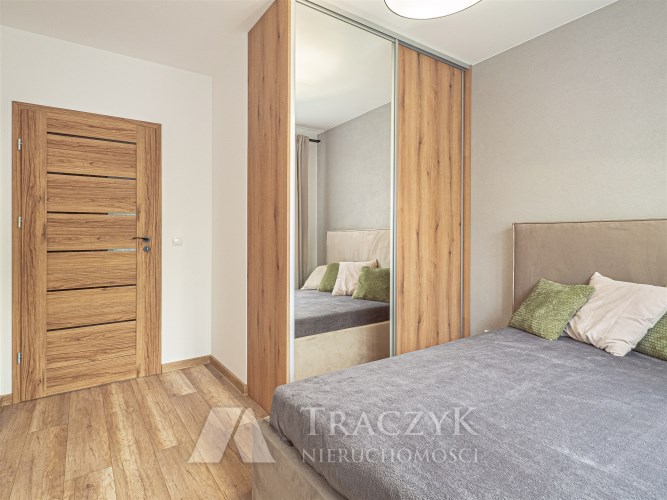 • sypialnia z wygodnym, podwójnym łóżkiem i pojemną szafą w zabudowie,