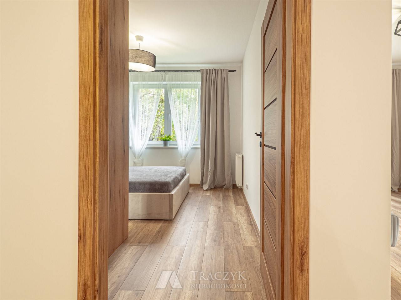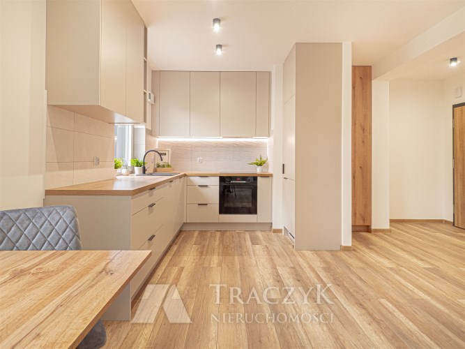 Wnętrze zostało urządzone z dbałością o detale – wyposażone w meble na wymiar oraz wysokiej jakości sprzęt AGD, co gwarantuje komfort i funkcjonalność od pierwszego dnia.