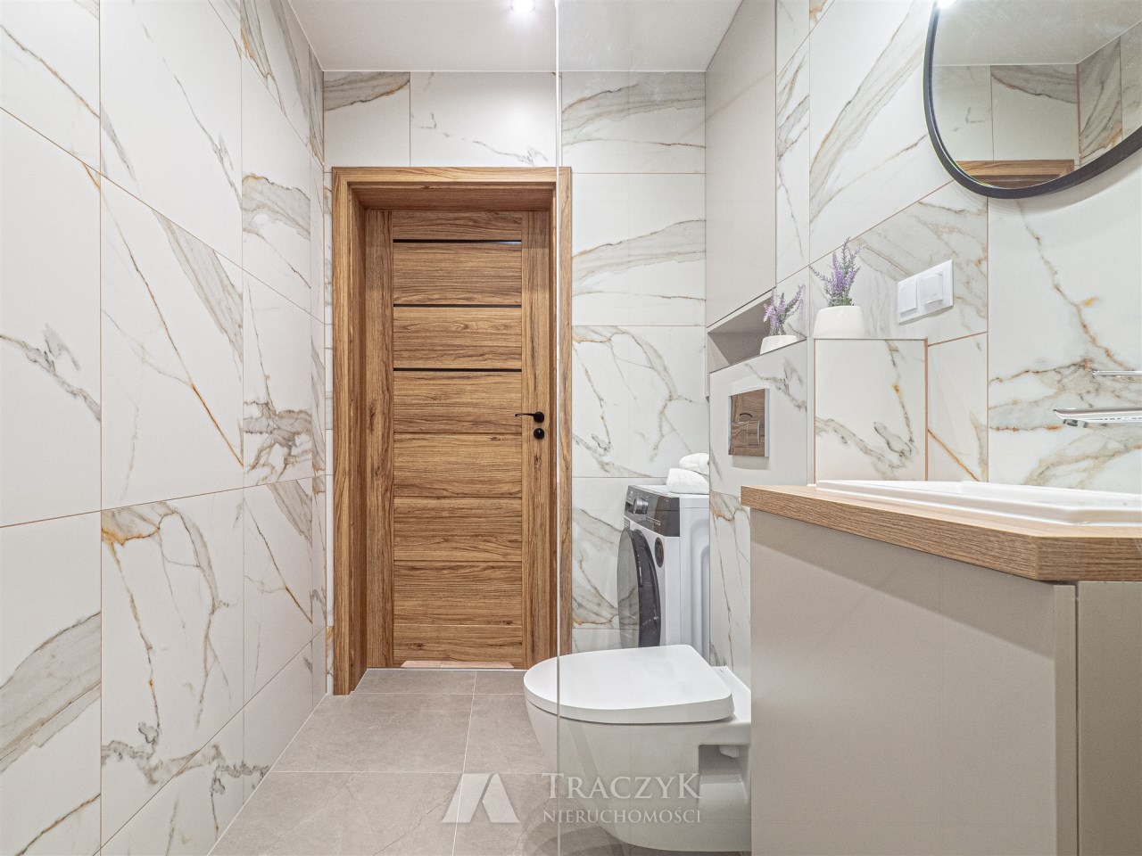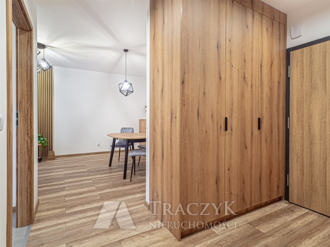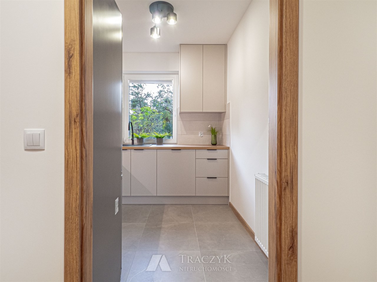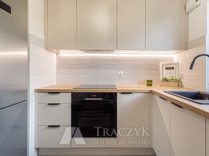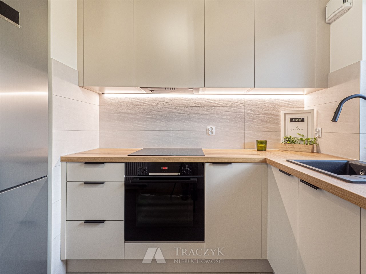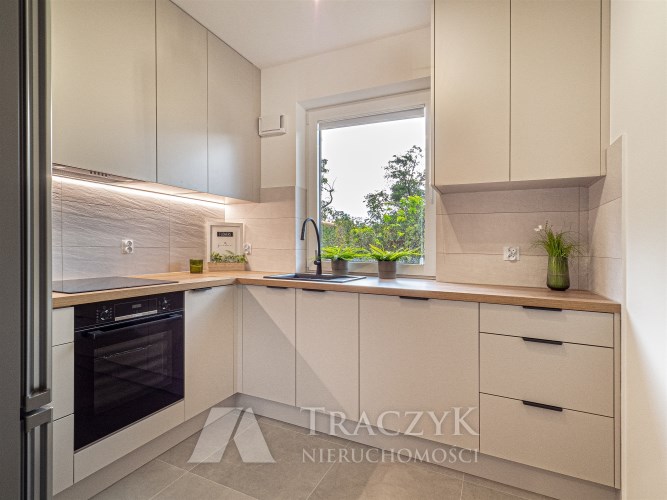 Wnętrze zostało urządzone z dbałością o detale – wyposażone w meble na wymiar oraz wysokiej jakości sprzęt AGD, co gwarantuje komfort i funkcjonalność od pierwszego dnia.