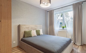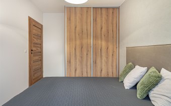 - sypialnia z wygodnym, podwójnym łóżkiem i dużą szafą w zabudowie,