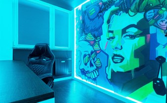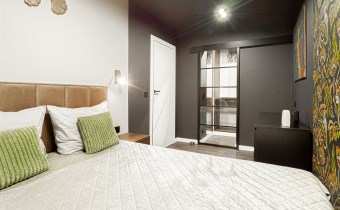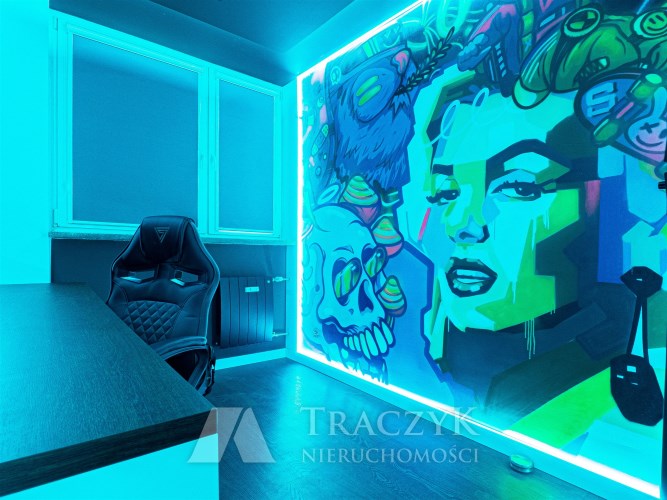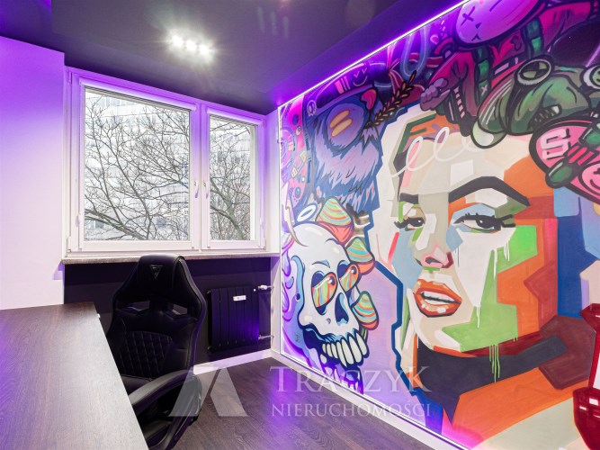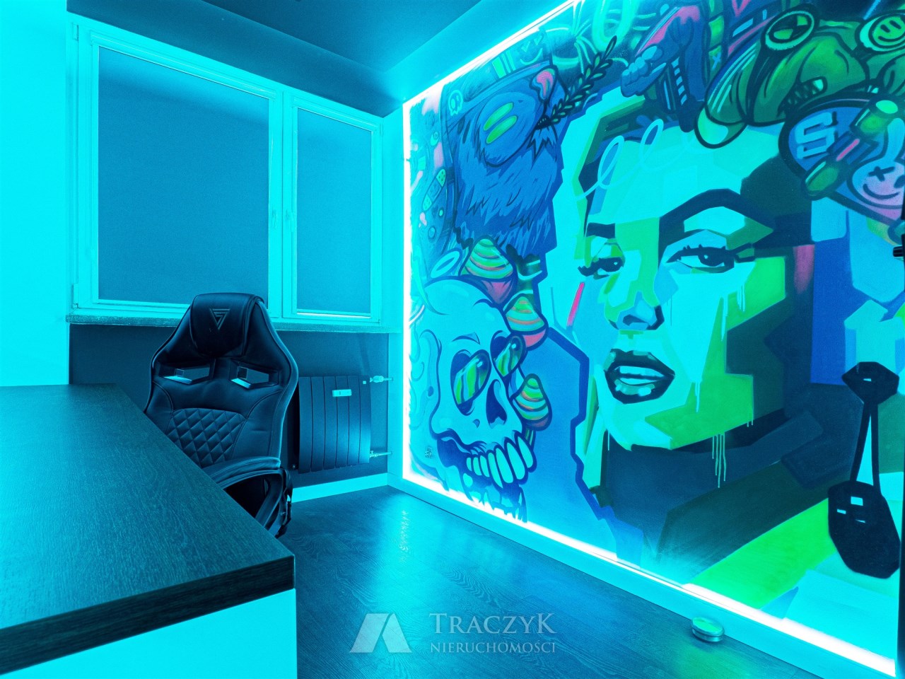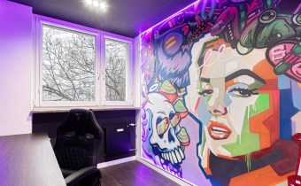 Stylowy, nowoczesny apartament – designerskie wnętrze z charakterem, unikalna ściana z graffiti i efektownym oświetleniem LED