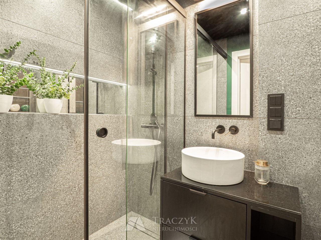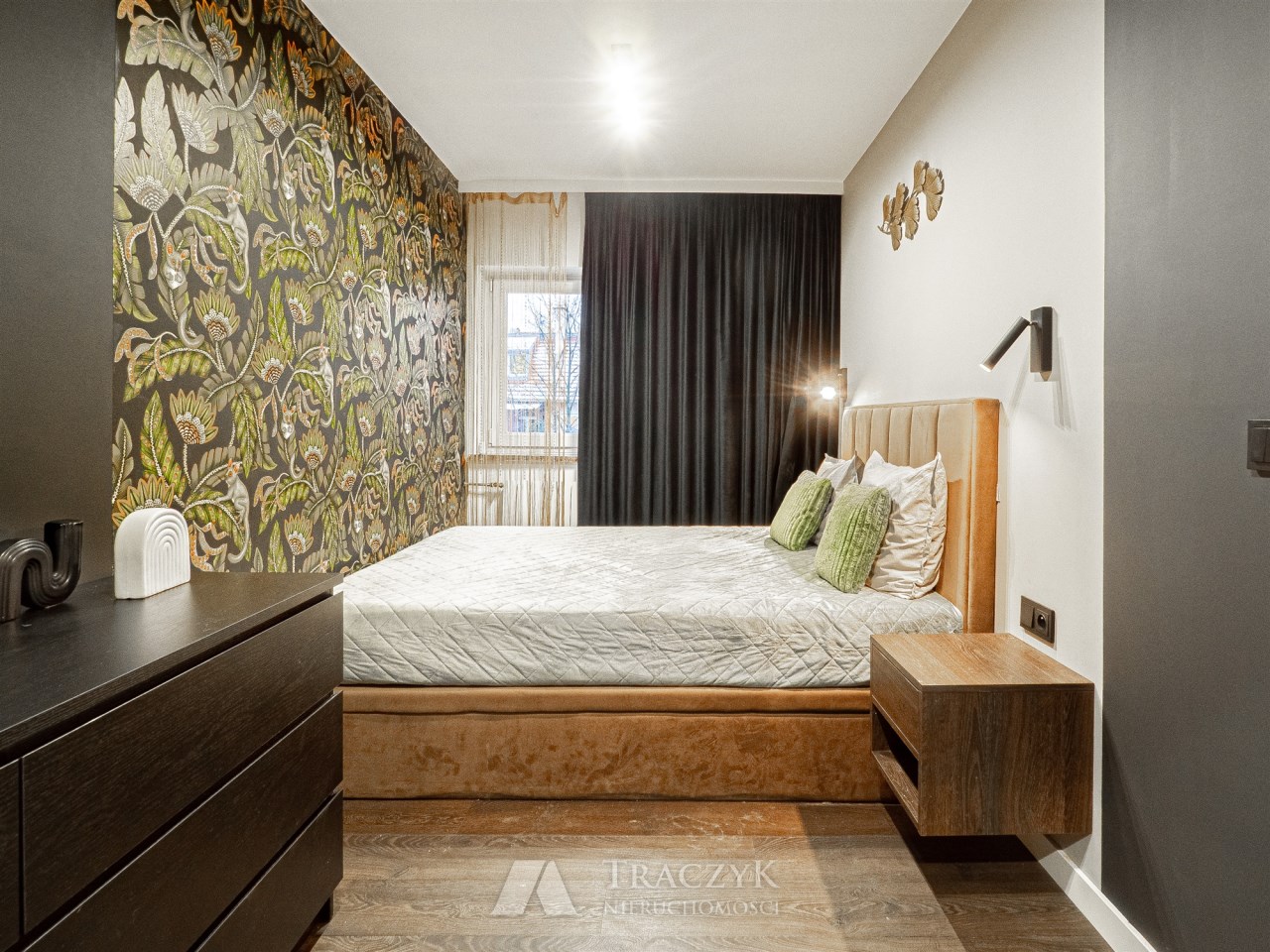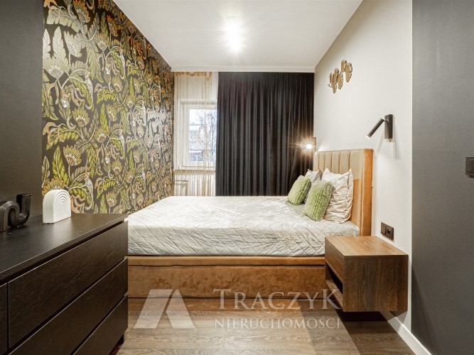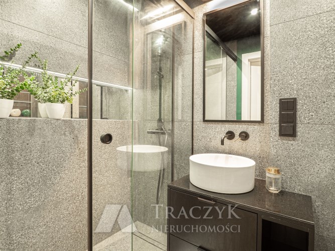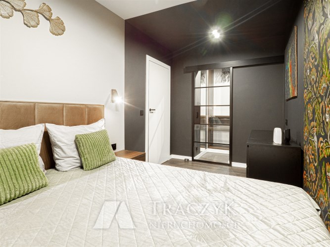 Mieszkanie zostało zaprojektowane bardzo stylowo i w sposób bardzo dobrze wykorzystujący całą dostępną przestrzeń. Na 56 metrach kwadratowych mamy wydzielone 2 całkowicie odrębne pokoje - sypialnię z garderobą oraz pokój biurowy, duży salon z wyjściem na balkon, kuchnię i łazienkę z wc.