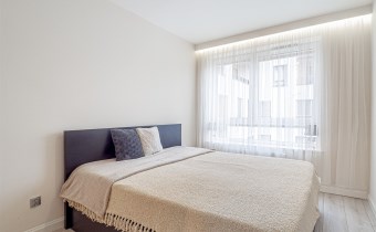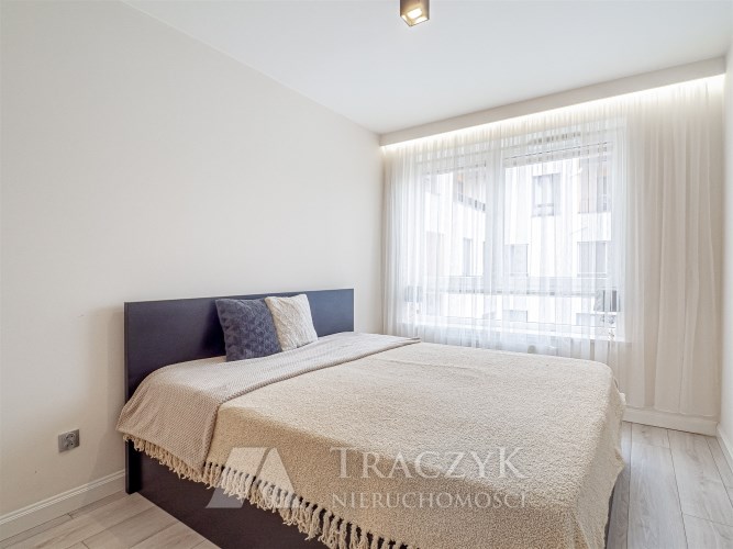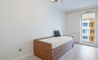 • pokój nr 3 (sypialnia) – duże, wygodne łóżko 180 × 200 cm z dodatkowym schowkiem, dodatkowo wydzielona przestrzeń mogąca pełnić funkcję garderoby,