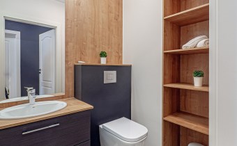 • osobne WC – z podświetlanym lustrem i półkami,